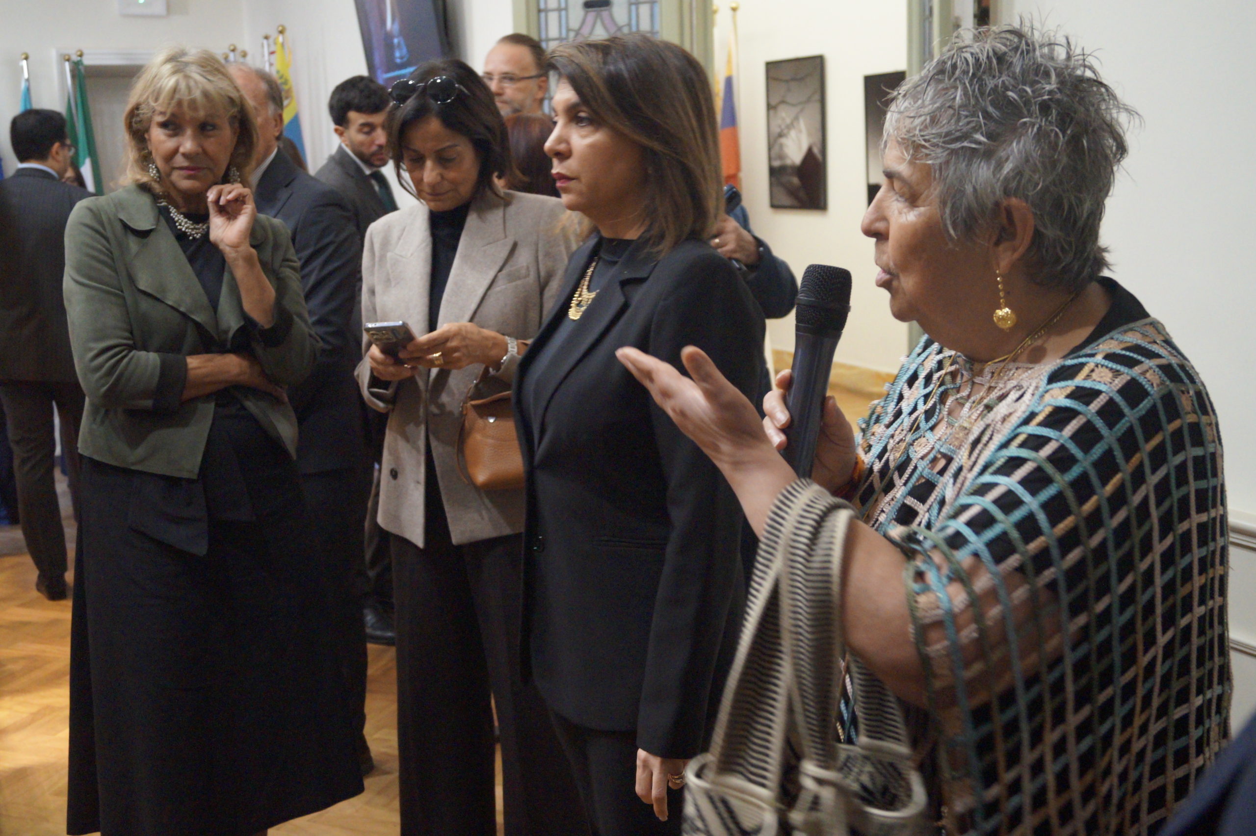 En concomitancia con la XII Conferencia Italia-América Latina y el Caribe, la Embajada de Colombia en Roma presenta al público italiano la exposición «Oro & Hoja de Coca: más allá del pensamiento colonial y la estigmatización contemporánea», que se podrá visitar del 6 al 10 de octubre en la sede de la IILA – Organización Internacional Italo-Latinoamericana, Sala del Consejo. La muestra fue inaugurada por la Ministra de Relaciones Exteriores de Colombia, Rosa Yolanda Villavicencio, junto con la Secretaria General de la IILA, Antonella Cavallari, y S.E. Ligia Margarita Quessep Bitar, Embajadora de Colombia en Italia, en presencia del Subsecretario de Estado de Asuntos Exteriores y Cooperación Internacional, Giorgio Silli, y numerosos distinguidos invitados.