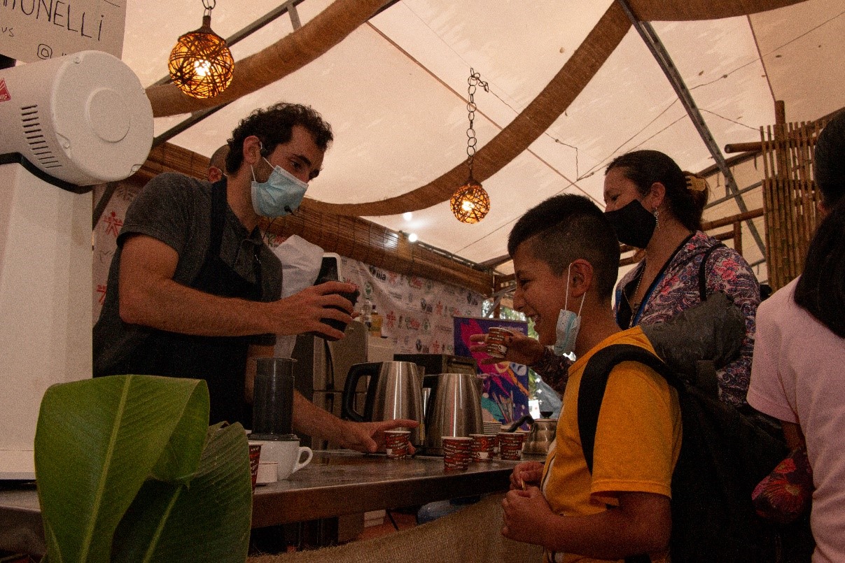 El chef internacional Stefano Barbato conquistó a los payaneses y colombianos fusionando la cocina italiana con los alimentos producidos por los campesinos de esta región, no sólo a través de platos de la tradición sino también acompañando a los chefs y aprendices de cocina del Servicio Nacional de Aprendizaje -SENA, socio estratégico del Proyecto. Asimismo, el módulo de Cafés Especiales del Proyecto PAZ COLOMBIA fue protagonista con cataciones internacionales de cafés caucanos de alta calidad, gracias a la presencia de Andrea Matarangolo, Ermanno Perotti y Andrea Onelli, especialistas italianos en barismo y catación, que hicieron preparaciones tradicionales con los sabores especiales del café de Colombia.