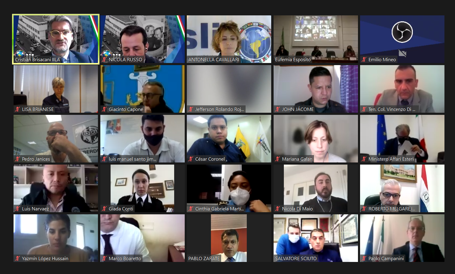 Es significativo, en la apertura del primer día, el discurso de la Ministra de Justicia de Paraguay, Cecilia Pérez Rivas, seguido por el del Director Central para América Latina y el Caribe de la DGMO/MAECI, Min. Michele Pala, también estuvieron presentes el Embajador de Paraguay en Italia y Presidente del IILA, Roberto Carlos Malgarejo Palacios y el Embajador de Italia en Asunción, Paolo Campanini, mientras que en el segundo día los ponentes fueron el Fiscal Nacional Antimafia y Antiterrorista, Federico Cafiero de Raho y la Fiscal General de Ecuador, Diana Salazar Méndez, presentada por el Embajador de Ecuador en Italia, Nelson Francisco Robelly.