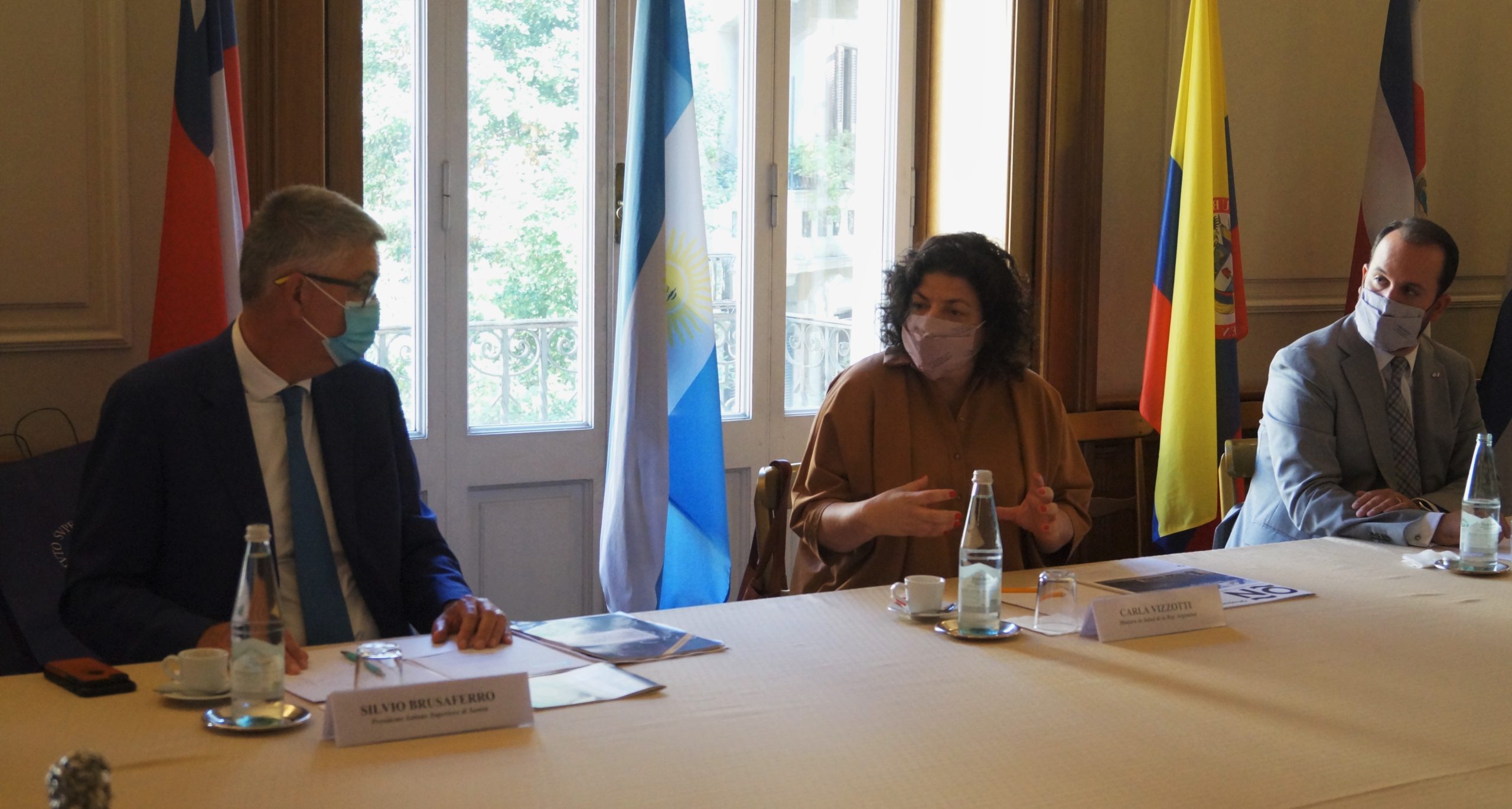 Encuentro entre la SG Cavallari, la Ministra de la Salud de Argentina, Carla Vizzotti y el Presidente del ISS, Silvio Brusaferro. Roma, 3 de septiembre 2021