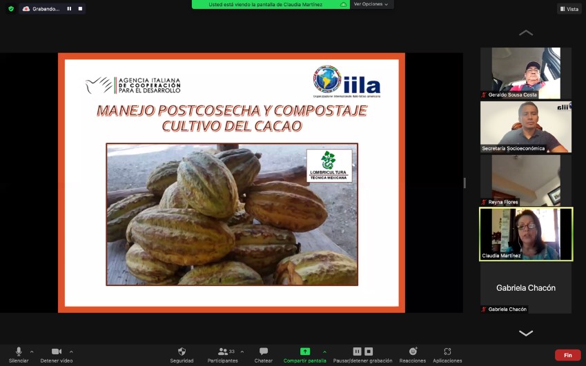 El taller virtual, que comenzó el 6 de diciembre de 2021, finalizará el 22 de enero de 2022. Los temas de los módulos son: Buenas prácticas agrícolas en el cultivo del cacao (GAP), Buenas prácticas poscosecha (fermentación y secado del cacao) (BPP), Buenas prácticas de compostaje y fertilizantes orgánicos (BPCAO), Chocolatería básica (CB), Chocolatería intermedia (CI) y Denominación de Origen (DO). El curso cuenta con 128 participantes (46% mujeres) de 8 países miembros del IILA (Bolivia, Brasil, Colombia, Ecuador, México, Panamá, Perú y Venezuela). Los participantes recibirán una formación integral, que los pondrá en condiciones de poder difundir el conocimiento aprendido, generando efectos multiplicadores en sus organizaciones.
