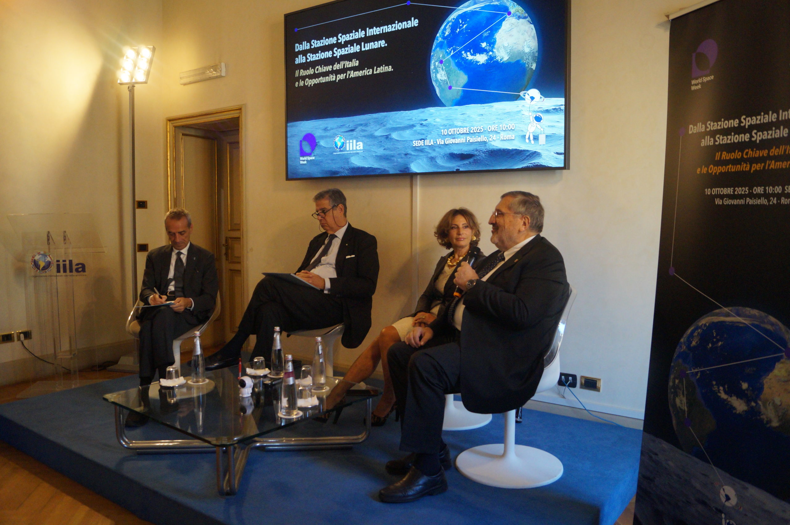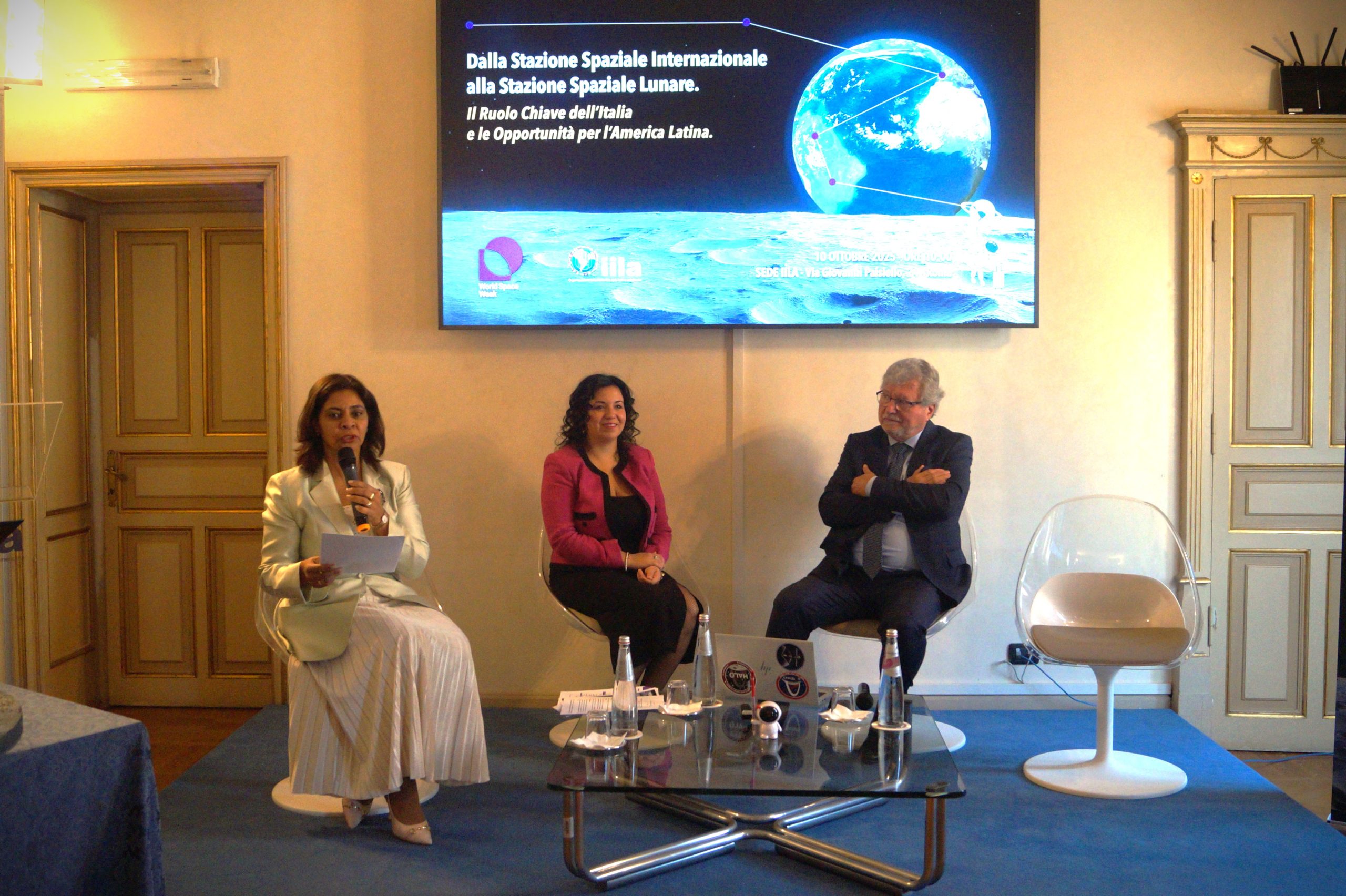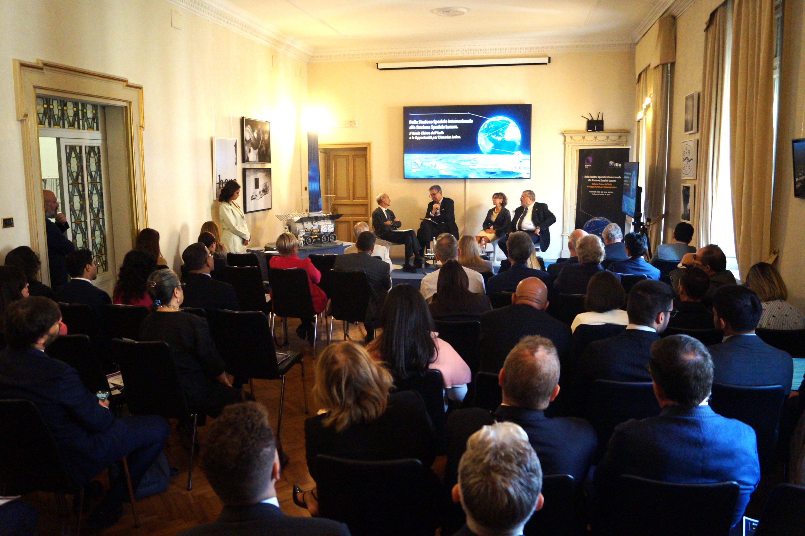 En su intervención de apertura, la Secretaria General de la IILA, Antonella Cavallari, subrayó el compromiso de Italia con la cooperación espacial y su papel estratégico en el desarrollo de la Estación Espacial Internacional, llamando también la atención sobre los nuevos desafíos de la exploración más allá de la órbita terrestre, como la gestión de los desechos espaciales. Entre los saludos institucionales, Marco Lisi, Enviado Especial del MAECI para el Espacio, destacó la complementariedad estratégica entre Italia y América Latina, subrayando cómo una colaboración estructurada puede generar valor y oportunidades concretas en distintos ámbitos, incluido el industrial. El Prof. Teodoro Valente, Presidente de la Agencia Espacial Italiana (ASI), reafirmó la importancia de la diplomacia espacial y de la colaboración entre países. Italia, recordó, participa activamente en los principales programas internacionales, entre ellos Artemis, Gateway, Mars Sample Return y el Módulo Lunar MPH. “El espacio no es solo una frontera tecnológica, sino un campo de entrenamiento para la cooperación internacional. La asociación entre Italia y América Latina es un ejemplo concreto de cómo el espacio puede unir culturas, competencias y aspiraciones, transformando desafíos comunes en oportunidades de progreso”. Para concluir los saludos, el Embajador Stefano Pontecorvo, Presidente de Leonardo S.p.A., destacó el papel central de Leonardo y Telespazio en el desarrollo de la economía lunar y de los servicios espaciales, apostando por la innovación y la cooperación. Entre los proyectos más relevantes, se encuentra Moonlight, iniciativa conjunta de ASI y ESA para desarrollar los primeros servicios de comunicación y navegación lunar en apoyo a más de 300 misiones en las próximas dos décadas.
