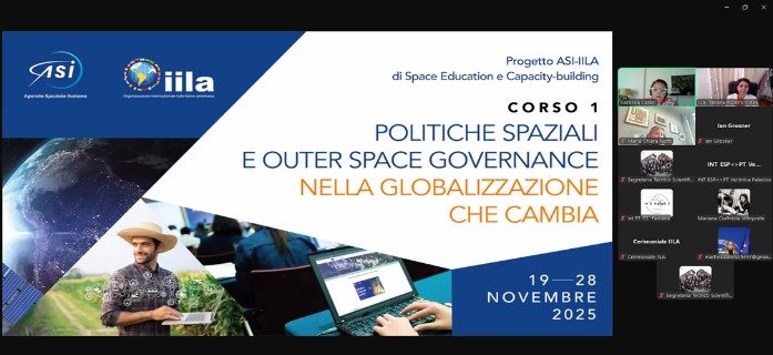 Del 19 al 28 de noviembre de 2025, se desarrolló el Curso en línea “Políticas espaciales y Gobernanza del espacio ultraterrestre en la globalización que cambia”, realizado en el marco de la alianza estratégica ASI-IILA. Durante ocho jornadas de trabajos, algunos de los expertos internacionales más destacados de este sector protagonizaron una actividad que reunió técnicos y operadores de las agencias espaciales y otras entidades homólogas de Latinoamérica.