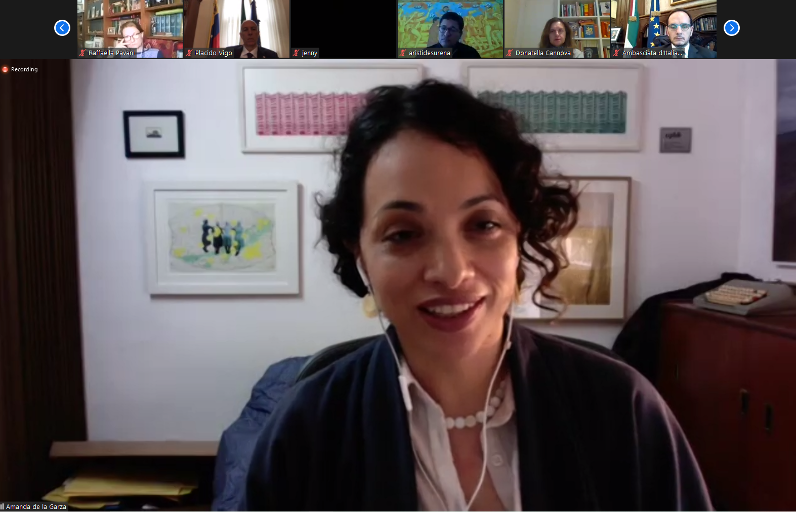 En este momento tan difícil la Viceministra de Asuntos Exteriores Marina Sereni ha saludado “con amistad y cariño” a América Latina, y después de un emotivo homenaje al Maestro Morricone y de unas palabras sobre la emocionante aportación que los artistas han dado durante el confinamiento, ha hecho hincapié en la fundamental contribución de la cultura para redefinir el papel de Italia en el mundo, recordando que nada menos que el 14% de nuestras exportaciones pertenecen al sector cultura y espectáculo. Es preciso intensificar la cooperación en este campo pensando en proyectos comunes y en co-producciones.