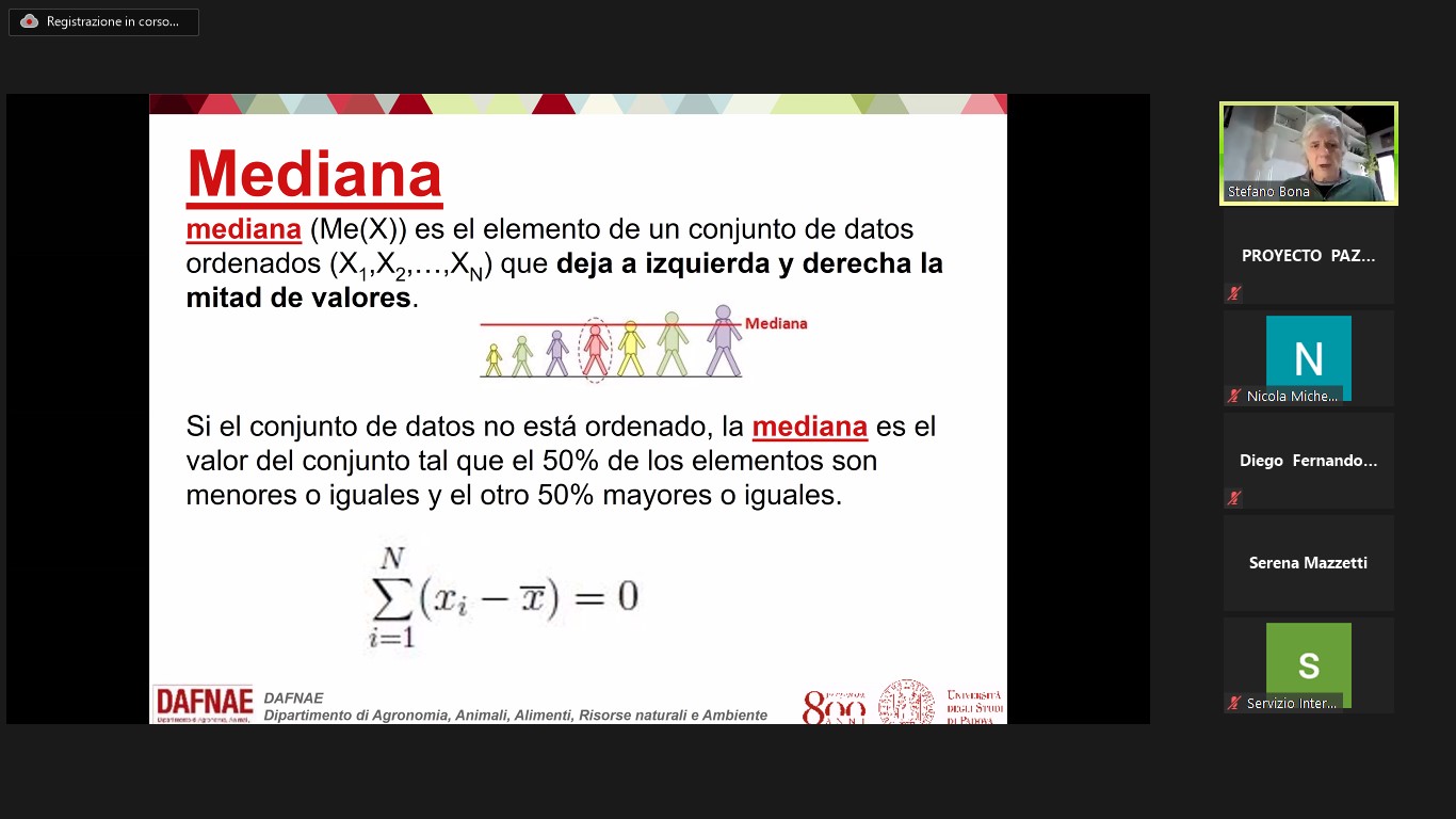 Il corso ha l’obiettivo specifico di trasferire conoscenze necessarie a garantire la attivazione di processi di ricerca scientifica nell’ambito del modulo di Agricoltura Sostenibile, che si sta sviluppando all’interno del Centro La Angostura SENA (Huila) e del Centro Agropecuario SENA (Cauca), a partire dagli strumenti e dalle strutture che il Progetto PAZ COLOMBIA metterà a disposizione. Questo primo corso di statistica si concentrerà principalmente sull’approfondimento delle nozioni di base della statistica che consentono di pianificare e gestire in modo adeguato un disegno sperimentale in campo agricolo.
