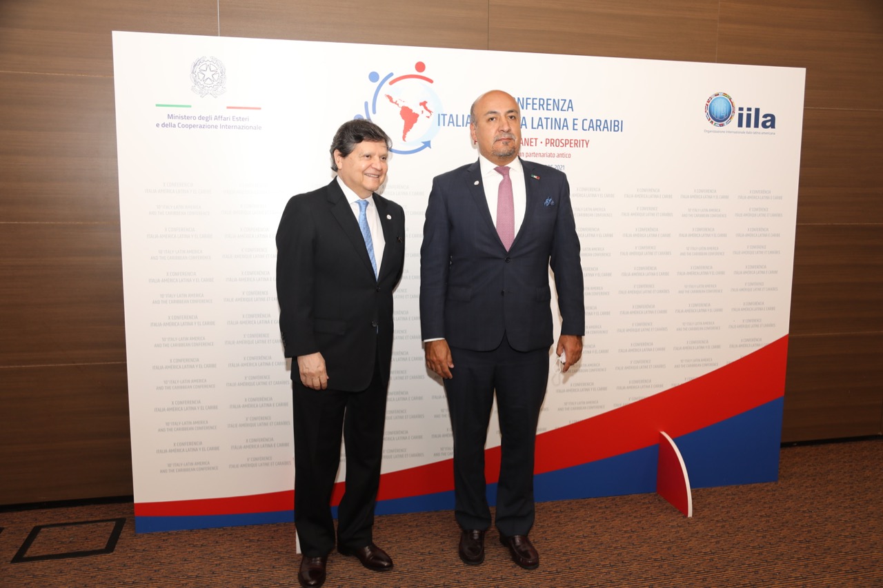 Da sinistra S.E. Euclides Roberto Acevedo Candia, Ministro delle Relazioni Estere della Repubblica del Paraguay, Presidenza dell’Organizzazione Internazionale Italo – Latinoamericana (IILA) e S.E. Maximiliano Reyes Zúñiga, Sottosegretario agli Affari Esteri degli Stati Uniti Messicani.