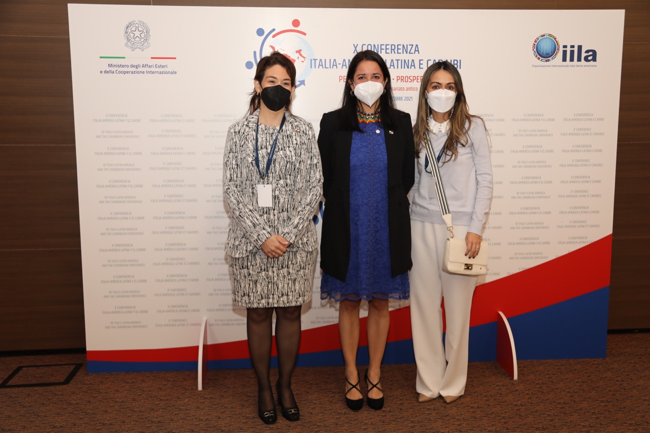 Da sinistra Jessica Bedoya, Capo del Gabinetto e Direttrice della Strategia della Banca Interamericana di Sviluppo (BID), S.E. Karen Alejandra Najarro Bonilla, Sottosegretaria di Stato per la Cooperazione e la Promozione Internazionale della Repubblica di Honduras e S.E. Dayra Carrizo Castillero, Vice Ministra delle Relazioni Estere della Repubblica di Panama.