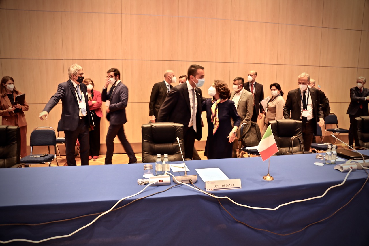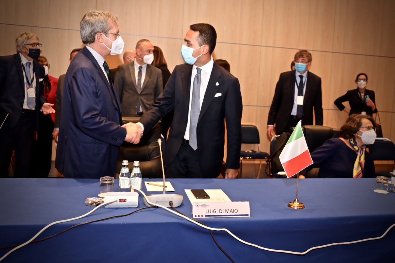 Da sinistra, S.E. Luigi Di Maio, Ministro degli Affari Esteri e della Cooperazione Internazionale della Repubblica italiana, e Min. Plen. Luca Sabbatucci, Direttore Generale DGMO – Direzione generale per la mondializzazione e le questioni globali