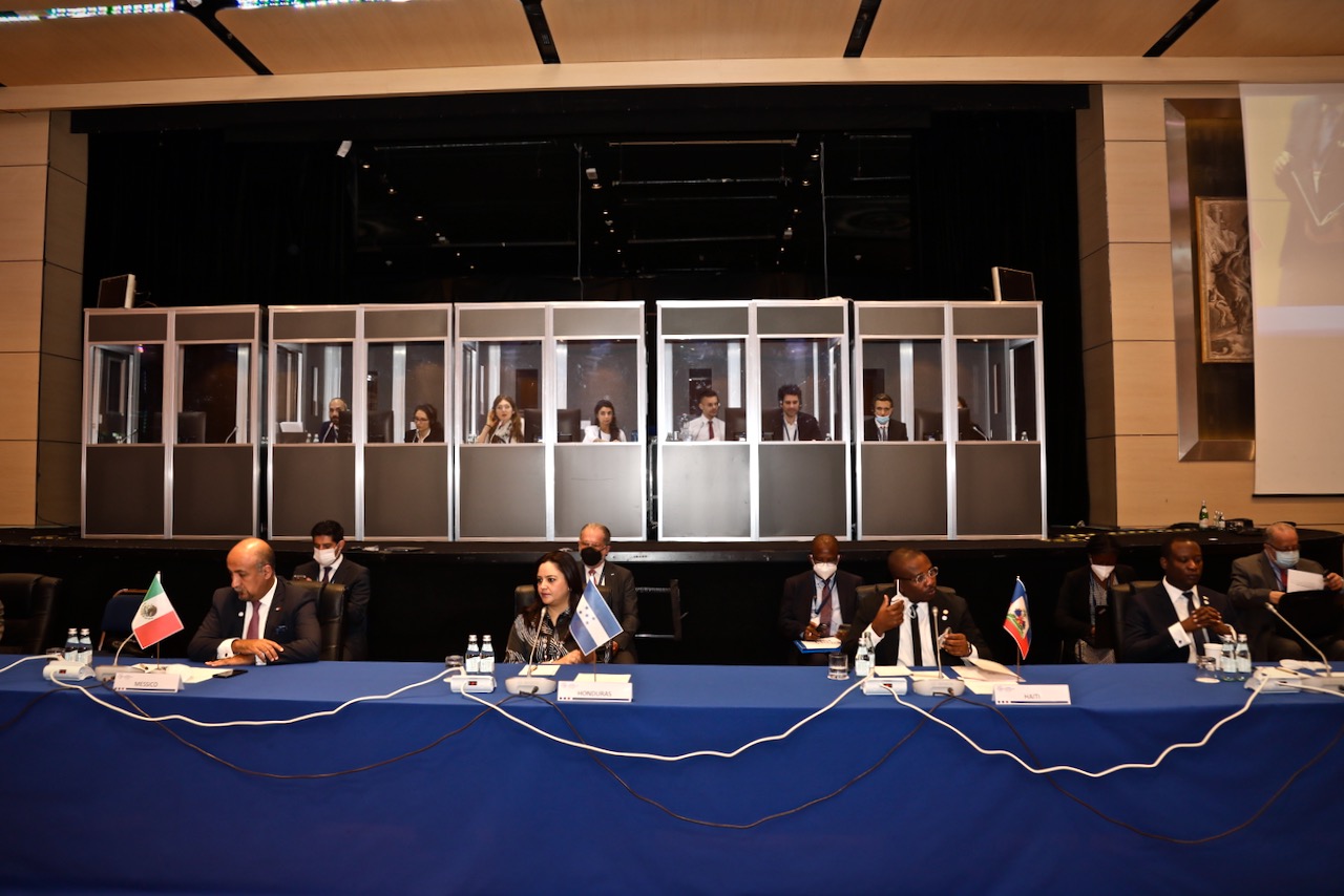 Da sinistra S.E. Maximiliano Reyes Zúñiga, Sottosegretario agli Affari Esteri degli Stati Uniti Messicani, S.E. Karen Alejandra Najarro Bonilla, Sottosegretaria di Stato per la Cooperazione e la Promozione Internazionale della Repubblica di Honduras, S.E. Claude Joseph, Ministro delle Relazioni Estere e degli Affari Religiosi della Repubblica di Haiti e S.E. Hugh Hilton Todd, Ministro delle Relazioni Estere e della Cooperazione Internazionale della Repubblica Cooperativistica della Guyana.