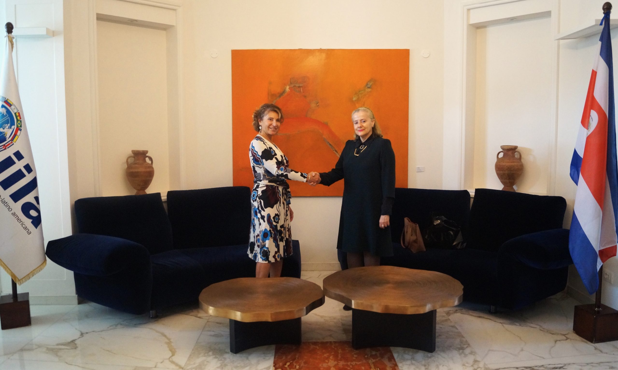 Venerdì 5 maggio, la Segretario Generale dell’IILA, Antonella Cavallari, ha ricevuto presso la sede dell’Organizzazione la gradita visita della Vice Ministro degli Affari Bilaterali e della Cooperazione Internazionale del Ministero degli Affari Esteri e del Culto del Costa Rica, Lydia Peralta Cordero, accompagnata da i suoi più stretti collaboratori.