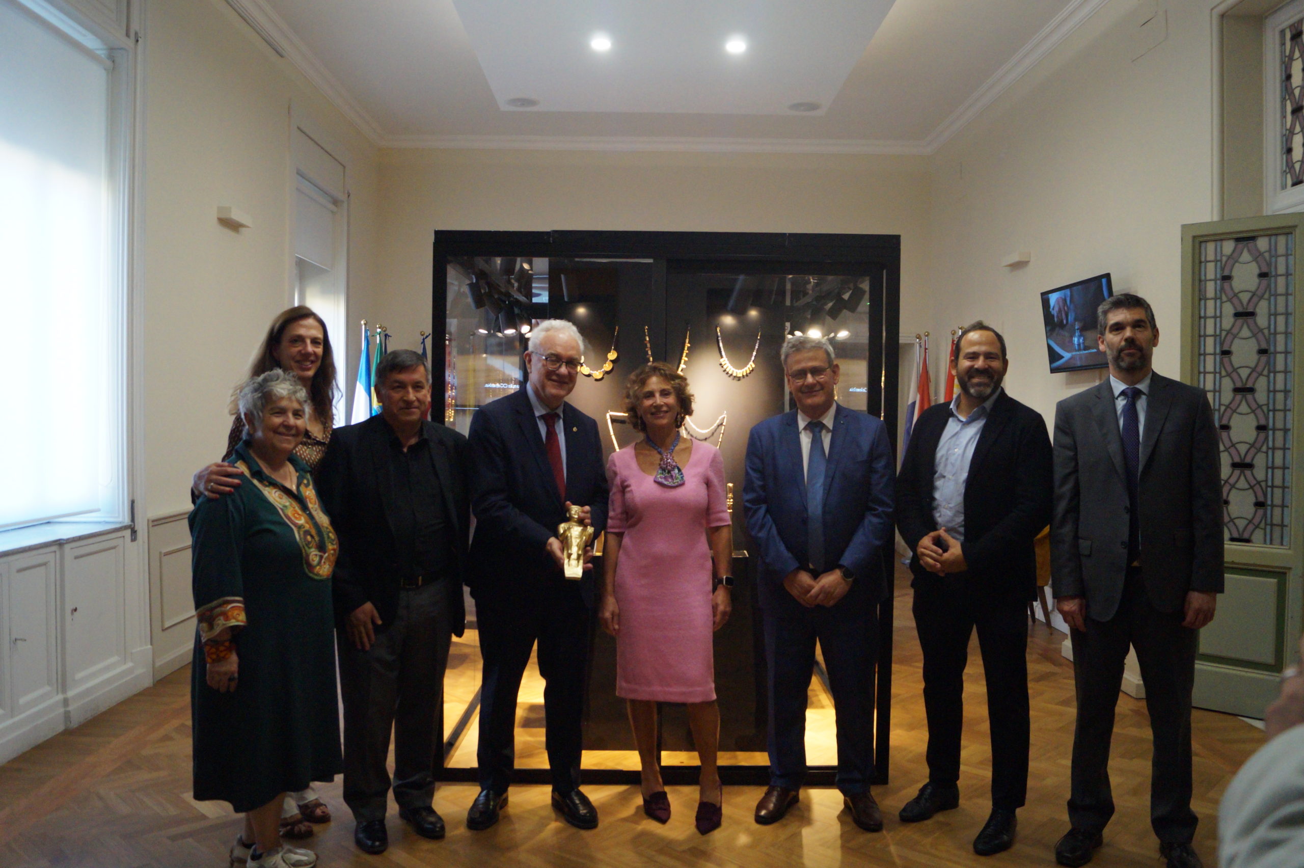 Molti dei Capi Delegazione presenti alla Conferenza hanno infine avuto l’occasione di visitare la suggestiva mostra organizzata dall’Ambasciata di Colombia nella sede dell’IILA: “Oro & Foglia di Coca: oltre il pensiero coloniale e la stigmatizzazione contemporanea”. La mostra, visitabile fino al 10 ottobre 2025, espone 56 fedeli repliche del celebre Tesoro Quimbaya, realizzate dal maestro orafo Omar Hurtado e mette in discussione le narrazioni coloniali che hanno ridotto l’oro a bottino imperiale e criminalizzato una pianta sacra dal profondo valore culturale e medicinale.