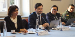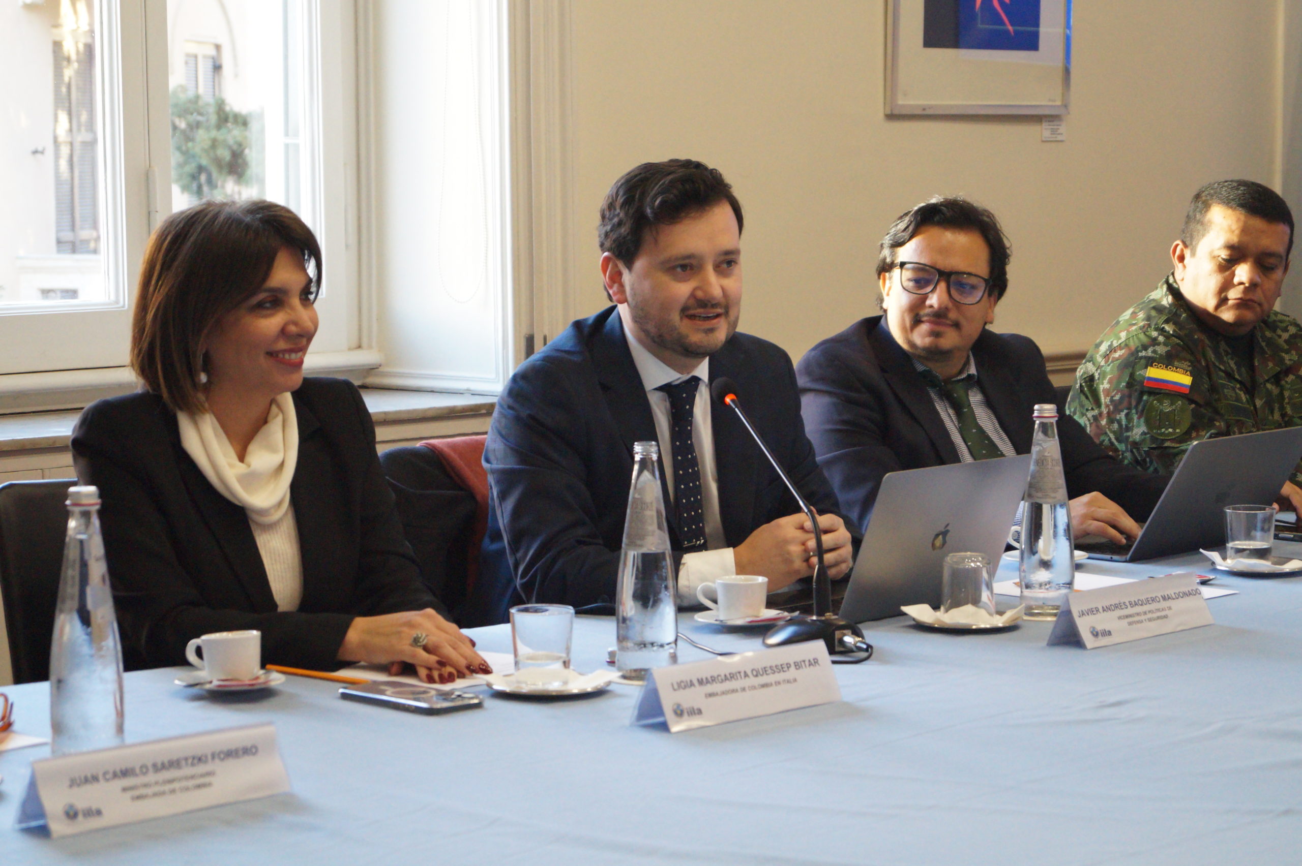 Giovedì 29 gennaio, presso la sede dell’IILA si è svolto un incontro con il Vice Ministro della Difesa della Repubblica di Colombia, Javier Andrés Baquero Maldonado, accompagnato da S.E. Ligia Margarita Quessep, Ambasciatrice della Colombia in Italia e Presidente dell’IILA e dai suoi più stretti collaboratori. Per l’IILA hanno partecipato Tatiana Ribeiro Viana, Segretario Generale a.i., Gianandrea Rossi, Direttore Esecutivo, Mauro Camicia, Responsabile del Servizio Cooperazione italiana e Claudia Gatti del Servizio Cooperazione europea.