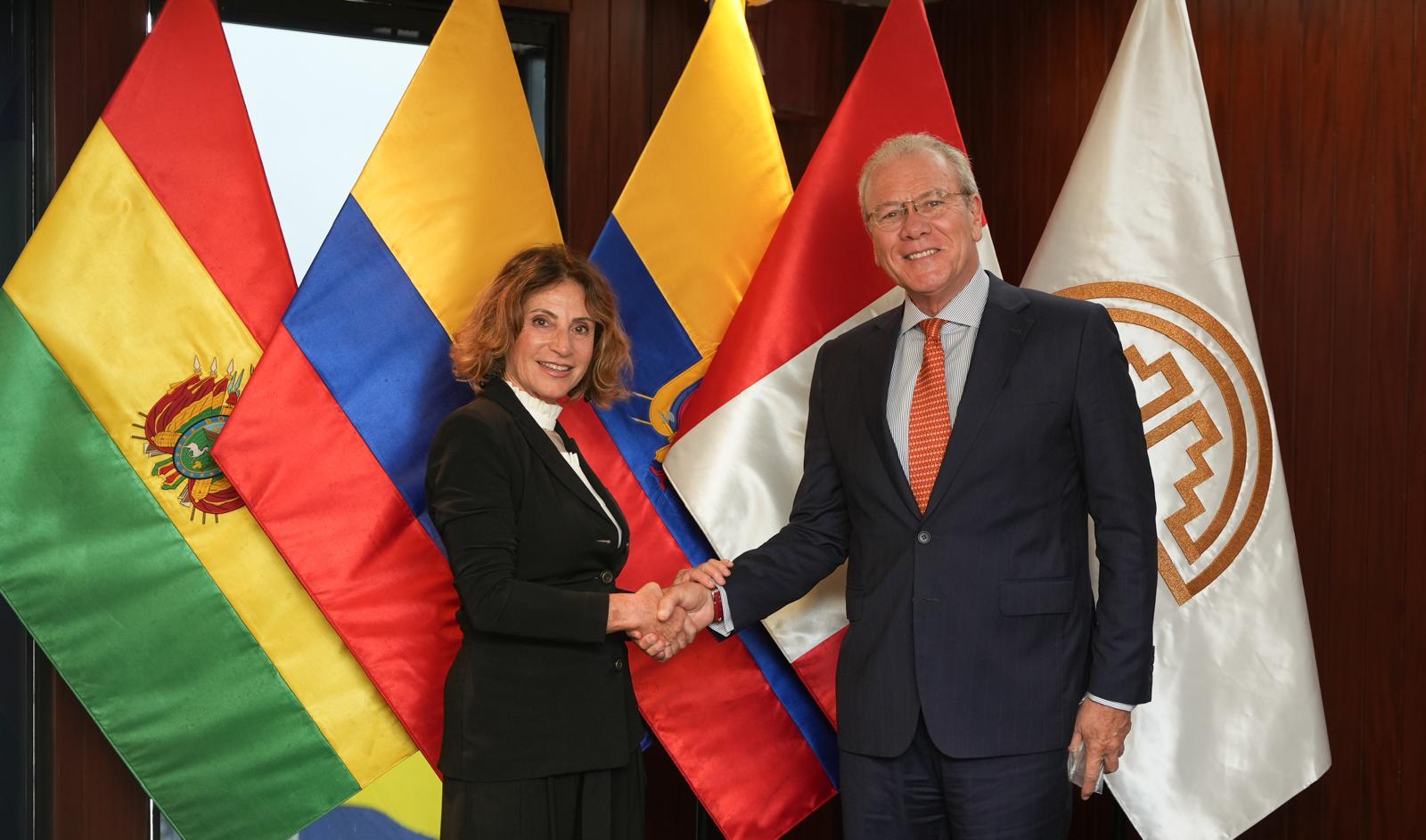Nella stessa giornata di giovedì 24 ottobre, la Segretario Cavallari si è riunita con il Segretario Generale della CAN – Comunidad Andina, Gonzalo Gutiérrez Reinel, per fare il punto sui programmi europei attraverso cui IILA sta collaborando proficuamente con questa Organizzazione: AL-INVEST Verde ed EUROFRONT, ma soprattutto per indiviuare nuove aree di collaborazione. In particolare i due Segretari Generali hanno concordato di creare opportune sinergie nei settori del contrasto al crimine organizzato transazionale, compreso il traffico illecito di beni culturali, della digitalizzazione sopratutto in ambito PMI e nella formazione di personale specializzato. Le due organizzazioni sigleranno a breve un MoU per consolidare la cooperazione.